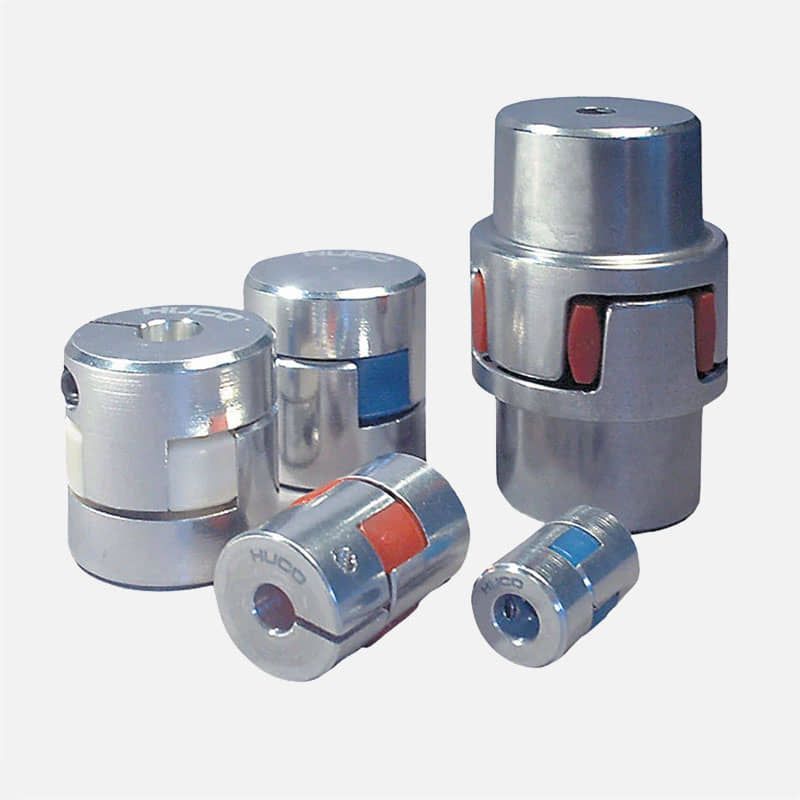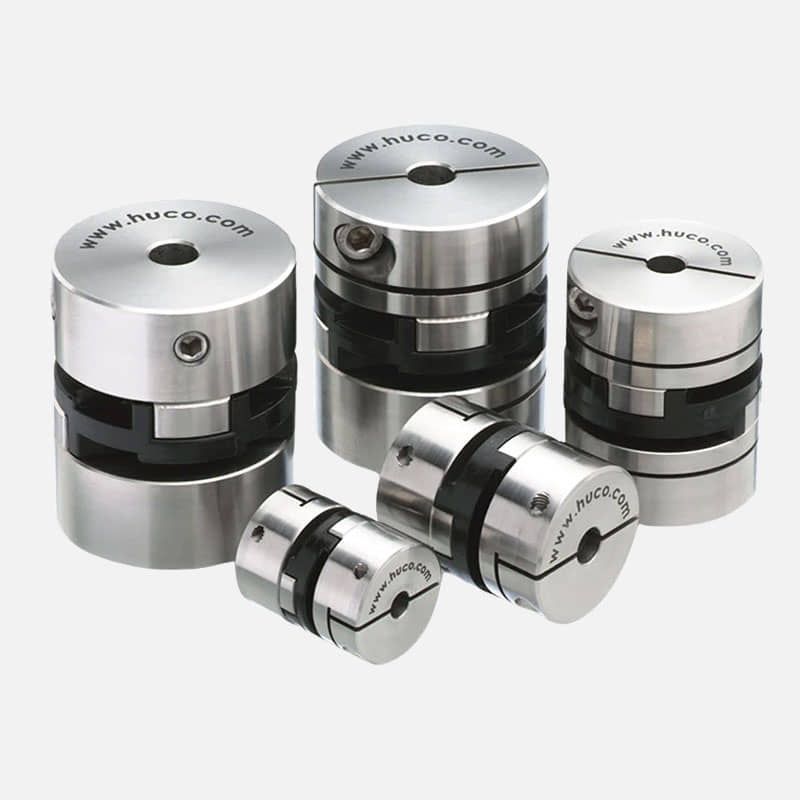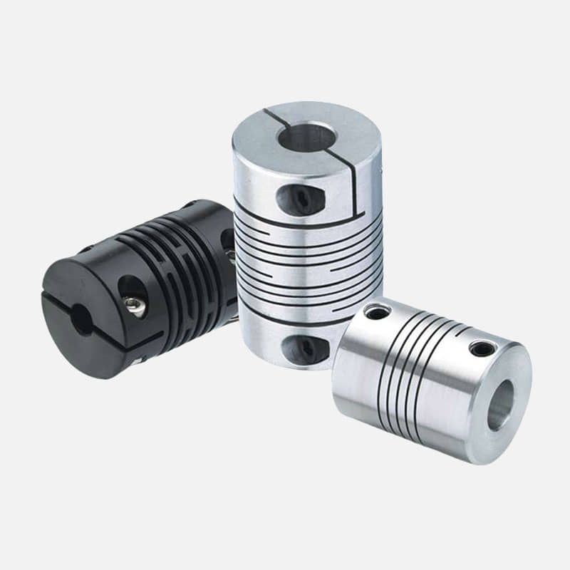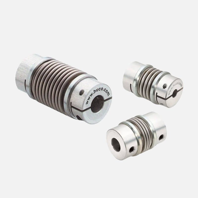 Coples y servocoples para unir ejes y transmitir potencia con mínima holgura, servomotores para controlar posición, velocidad y torque con alta precisión, y encoders para obtener retroalimentación exacta del movimiento y asegurar un control continuo del sistema.