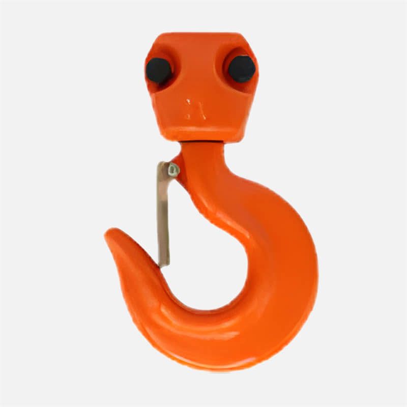 - Gancho giratorio forjado y tratado térmicamente con pestillo con indicador de estiramiento y código de identificación.