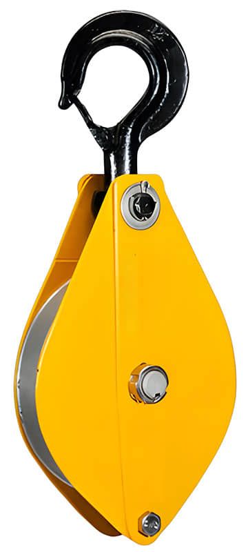 - La función de apertura permite una rápida inserción y posicionamiento del cable de acero en la polea.